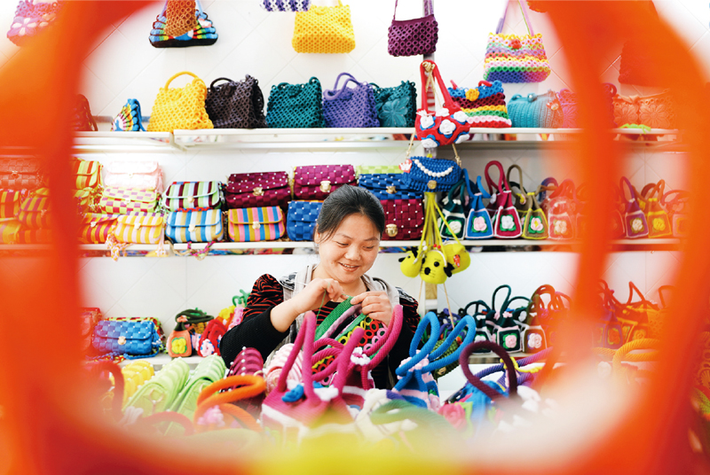 增加就業(ye) 是最有效最直接的脫貧方式。在做好疫情防控的前提下,要有序推進易地扶貧搬遷安置點的“扶貧車間”複工複產(chan) ,促進搬遷群眾(zhong) 在家門口實現就業(ye) 增收,不斷鞏固脫貧攻堅成果。圖為(wei) 2020年3月21日,在貴州省赤水市長期鎮康橋社區,一名婦女在安置點的“扶貧車間”內(nei) 鉤織產(chan) 品。 人民圖片 王長育/攝
