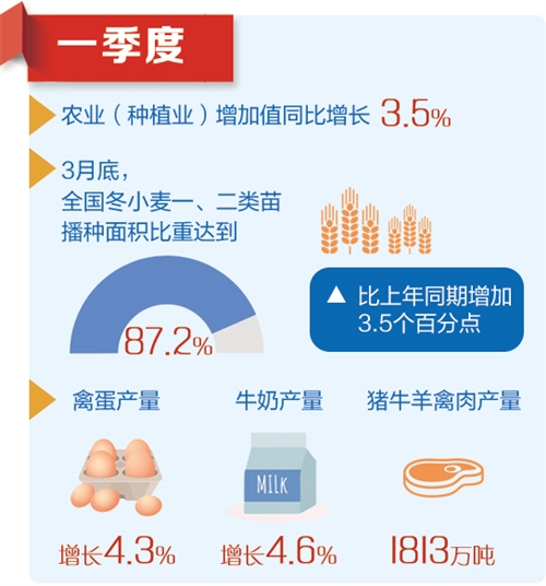 一季度,各地區各部門持續抓好糧食生產(chan) ,狠抓落實生豬穩產(chan) 保供政策舉(ju) 措,夏糧長勢總體(ti) 較好,生豬存欄連續兩(liang) 個(ge) 季度恢複增長。