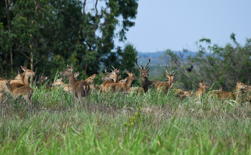 一群坡鹿在海南邦溪坡鹿自然保護區內(nei) 休憩(4月3日攝)。新華社記者 楊冠宇 攝