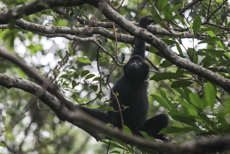 這是在海南霸王嶺自然保護區內(nei) 拍攝的海南長臂猿(2019年10月25日攝)。新華社記者 蒲曉旭 攝