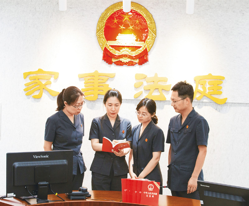 民法典婚姻家庭編中對協議離婚規定了一個(ge) 月的冷靜期。北京市西城區人民法院自2016年起就在離婚案件中試行訴前冷靜期機製。圖為(wei) 2020年6月11日,北京市西城區人民法院家事審判庭的法官們(men) 在學習(xi) 民法典。 劉新武/攝