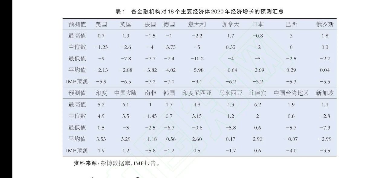 二是經濟發展衝(chong) 擊。伴隨著嚴(yan) 峻的公共衛生形勢,疫情對世界經濟的打擊很大,導致世界經濟增長乏力,疫情負麵衝(chong) 擊顯著。2020 年 4 月 1 日,聯合國發布了《世界經濟形勢與(yu) 展望》4 月月度簡報,分兩(liang) 種情況預測疫情對 2020 年全球經濟的影響,2020 年全球經濟增長1.2%;最糟糕的情況下,全球經濟衰退,增長率為(wei) -0.9%。國際貨幣基金組織(IMF)4 月發布最新《世界經濟展望》報告,認為(wei) 全球經濟 2020 年將收縮 3%。彭博數據庫匯總了截至 3 月26 日各金融機構對全球主要國家(地區)經濟增長的預測。其中,美國經濟增長預測的中位數(平均數)是-1.25%(-2.13%),德國經濟增長預測中位數(平均數)是-3.25%(-4.02%),中國經濟增長預測中位數(平均數)是 3.5%(3.29%),日本經濟增長預測中位數(平均數)是-2%(-2.69%)。總體(ti) 上,各金融機構預測 2020 年各主要經濟體(ti) ,特別是歐美日等發達國家,經濟衰退概率非常高。