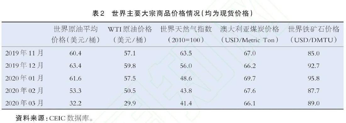 相比世界經濟增長的預期,國際金融市場和大宗商品價(jia) 格走勢麵臨(lin) 著極大的不確定性。美國三大股指全麵暴跌,標普500指數甚至於(yu) 十個(ge) 交易日內(nei) 接連觸發四次“熔斷”,終結了2008年金融危機後美國股市的“十年長牛”,誘發了全球範圍內(nei) 的金融恐慌,多國股市創曆史最大跌幅。3 月 12 日,除美國外,至少有巴西、加拿大、泰國、菲律賓、巴基斯坦等 10 個(ge) 國家股市出現熔斷;歐洲斯托克 600 指數暴跌 11%,刷新曆史最大跌幅;德國 DAX 指數下跌超過 12%,創1989 年以來最大單日跌幅;法國 CAC40 指數下跌超過 12%,刷新曆史最大跌幅;意大利富時指數收盤大跌近 17%;西班牙 IBEX35 指數跌近 15%。原油價(jia) 格大幅下降,WTI 原油價(jia) 格(現貨)從(cong) 2019 年底的 59.8 美元/桶,降至了今年 3 月份的 29.9 美元/桶,降幅 50%。受疫情因素影響,天然氣、煤炭和鐵礦石等其他大宗商品價(jia) 格也有不同程度的下降。