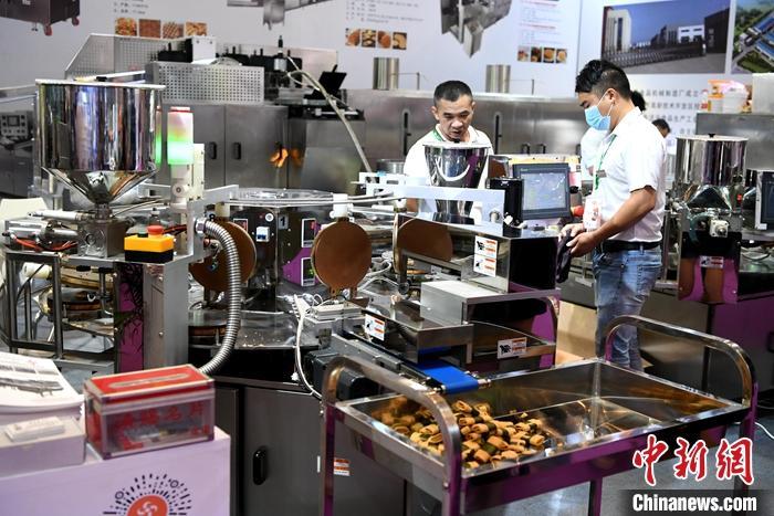 資料圖:7月20日,客商在福建泉州一展覽會(hui) 上了解機械設備。 中新社記者 王東(dong) 明 攝