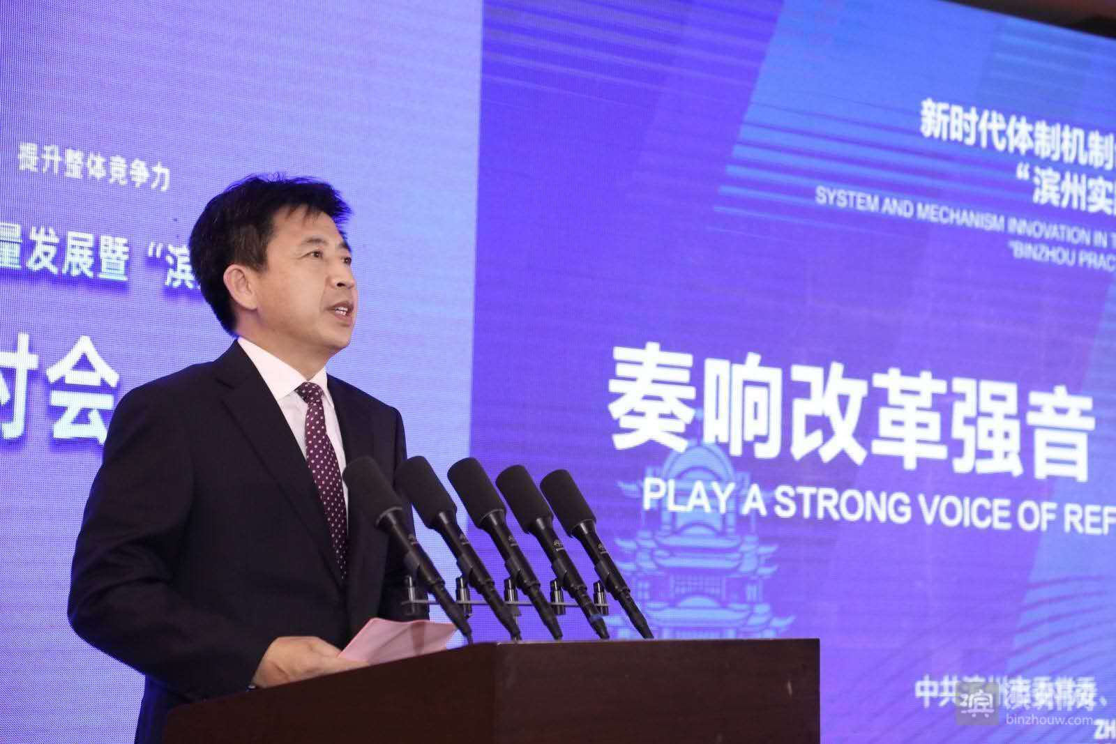 佘春明作了題為(wei) 《激發改革創新活力 推動富強濱州建設》的主辦單位致辭。他指出,麵對發展中的諸多挑戰和多重壓力,核心在於(yu) 用足用好改革這個(ge) 關(guan) 鍵一招!這要求我們(men) 要有奮發“敢想”的改革思維,堅持問題導向,以解決(jue) 全局和長遠的主要矛盾和關(guan) 鍵問題為(wei) 出發點和落腳點謀劃和推進改革;彰顯“敢幹”的改革擔當,樹立與(yu) 全麵深化改革開放協調相適的思想作風和幹部隊伍,在改革攻堅的新征程中展現擔當作為(wei) ;鍛造“敢成”的改革自信,用改革的眼光看發展,用發展的眼光看改革,在自覺自信中推出叫得響、立得住、群眾(zhong) 認可的改革舉(ju) 措,要讓改革紅利惠及每個(ge) 人。未來,濱州改革將堅持思想引領、人民至上、實事求是、尊崇褒獎,讓改革地位更突出、改革方向更堅定、改革路徑更明晰、改革保障更有力,以改革應對變局、破解困局、開拓新局,做改革的促進派、改革實幹家。