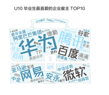 根據報告U10畢業(ye) 生熱門就業(ye) 企業(ye) 排名顯示,華為(wei) 與(yu) 騰訊最受U10畢業(ye) 生歡迎,跨國企業(ye) 在華的發展同樣蓬勃,如微軟、安永、亞(ya) 馬遜等。值得注意的是,排名前十的企業(ye) 中,包括騰訊、微軟、網易和百度在內(nei) 的大部分企業(ye) 均屬於(yu) 軟件與(yu) 信息技術服務業(ye) 。U10畢業(ye) 生最喜愛的高校雇主TOP7中,世界著名高校也悉數上榜。