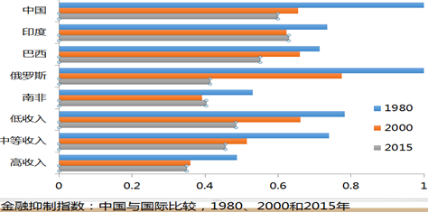 圖1 金融抑製指數:中國與(yu) 國際比較
