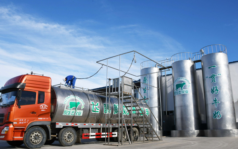 在黑龍江飛鶴乳業(ye) 股份有限公司專(zhuan) 屬的甘南縣瑞信達原生態牧場,工作人員在檢查一輛剛裝完鮮奶的全封閉低溫安全運輸車(2018年10月30日攝)。新華社記者 王建威 攝