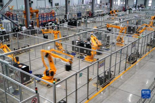 7月1日,在位於(yu) 江蘇省南京市江寧區的南京埃斯頓自動化股份有限公司工業(ye) 機器人生產(chan) 車間,工業(ye) 機器人在進行跑合測試。新華社記者 李博 攝