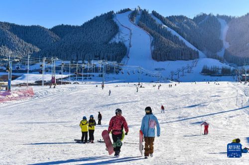 在位於(yu) 烏(wu) 魯木齊的新疆絲(si) 綢之路國際度假區,雪友在雪道滑雪(12月10日攝)。新華社記者 王菲 攝