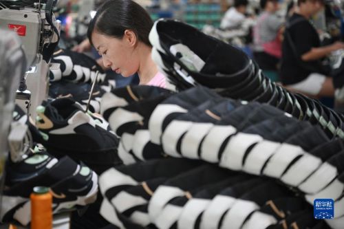 在位於(yu) 福建省泉州市的鴻星爾克集團鴻榮輕工公司車間,工人在製鞋生產(chan) 線上作業(ye) (7月30日攝)。泉州市是我國重要的製造業(ye) 基地,民營企業(ye) 較多。新華社記者 宋為(wei) 偉(wei) 攝