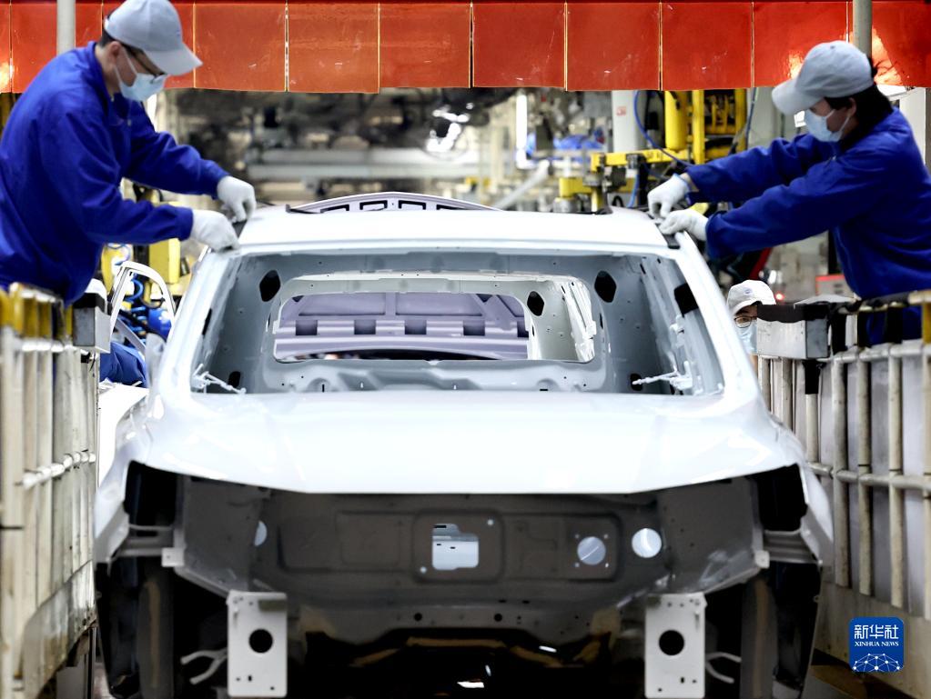 上汽臨(lin) 港乘用車工廠工人在總裝車間工作(4月23日攝)。新華社記者 陳建力 攝