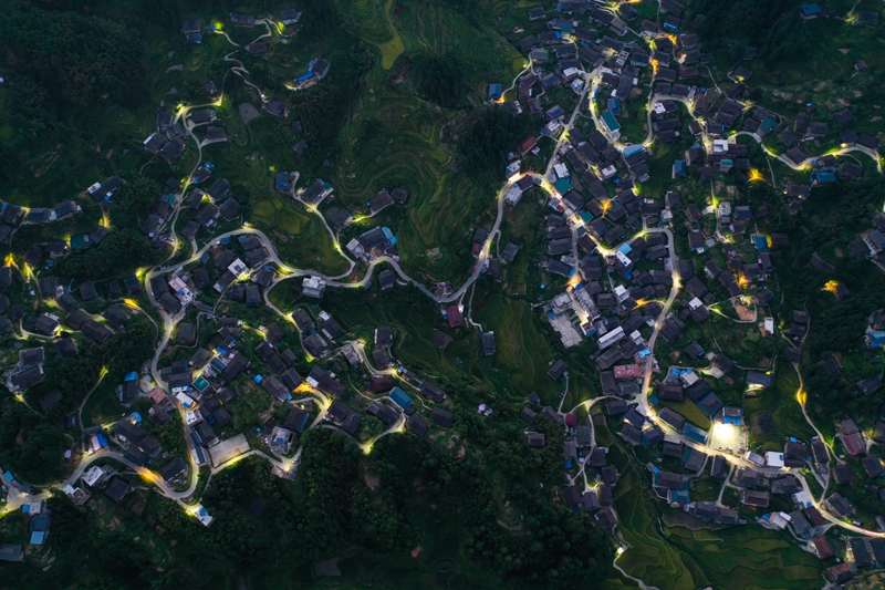 這是廣西融水苗族自治縣杆洞鄉(xiang) 錦洞村夜景(無人機照片,2021年8月30日攝)。新華社記者 黃孝邦 攝