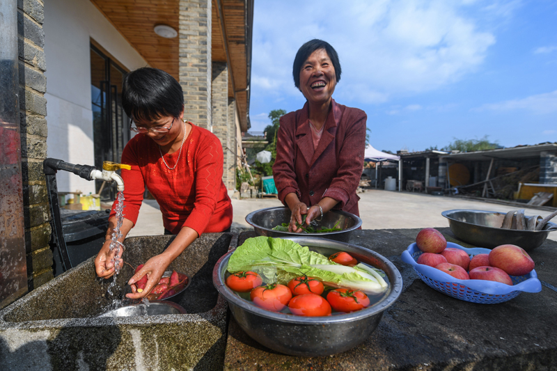 浙江省杭州市臨(lin) 安區天目山鎮九獅村村民在家門口洗菜(2020年10月10日攝)。新華社記者 徐昱 攝