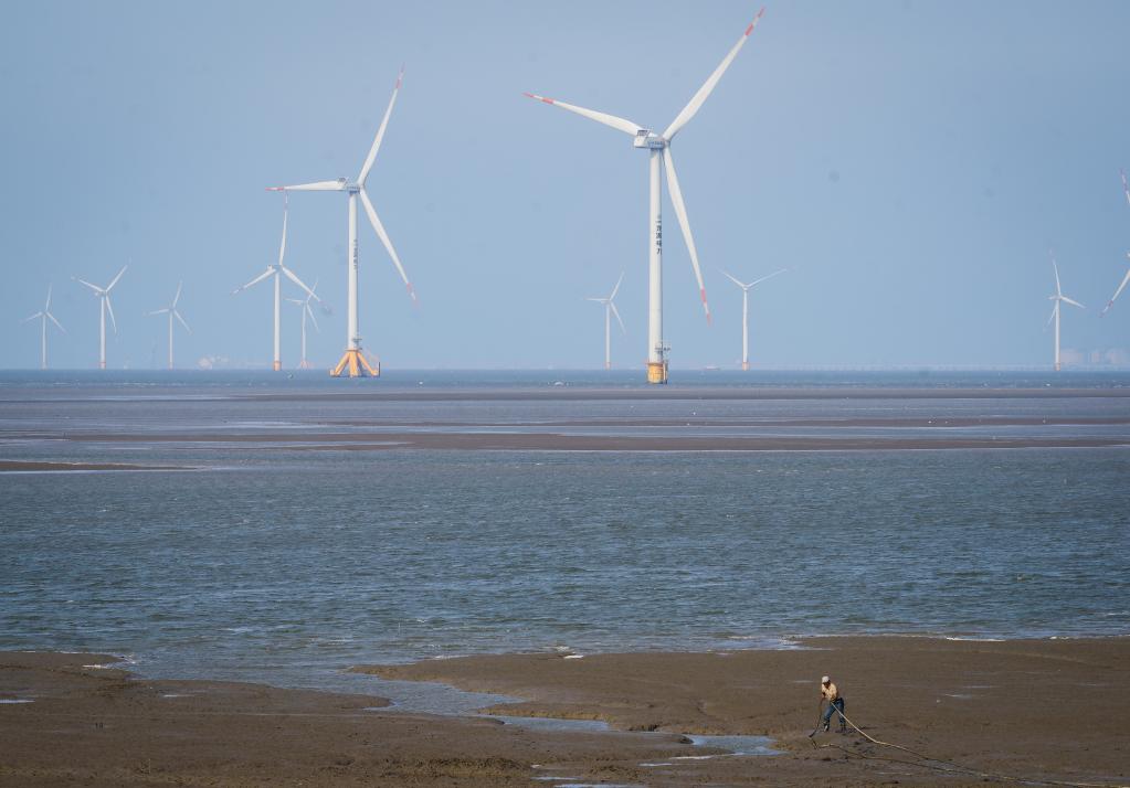 這是在如東(dong) 縣拍攝的潮間帶風力發電場(資料圖片)。新華社記者 李響 攝