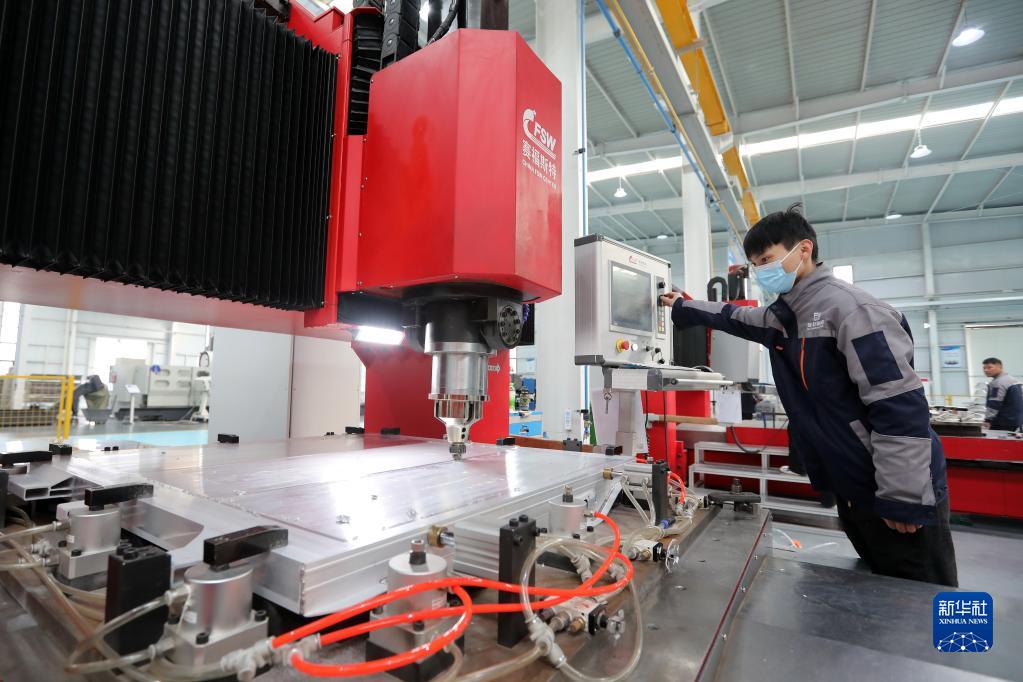 工人在安徽省淮北市一家陶鋁汽車部件生產(chan) 企業(ye) 車間內(nei) 作業(ye) (2021年12月23日攝)。新華社發(萬(wan) 善朝 攝)