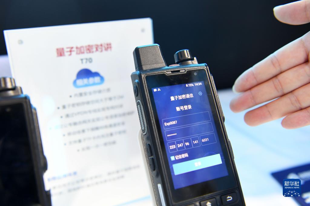 一家參展企業(ye) 代表在2022年國家網絡安全宣傳(chuan) 周網絡安全博覽會(hui) 上介紹量子加密對講(2022年9月4日攝)。新華社記者 劉軍(jun) 喜 攝
