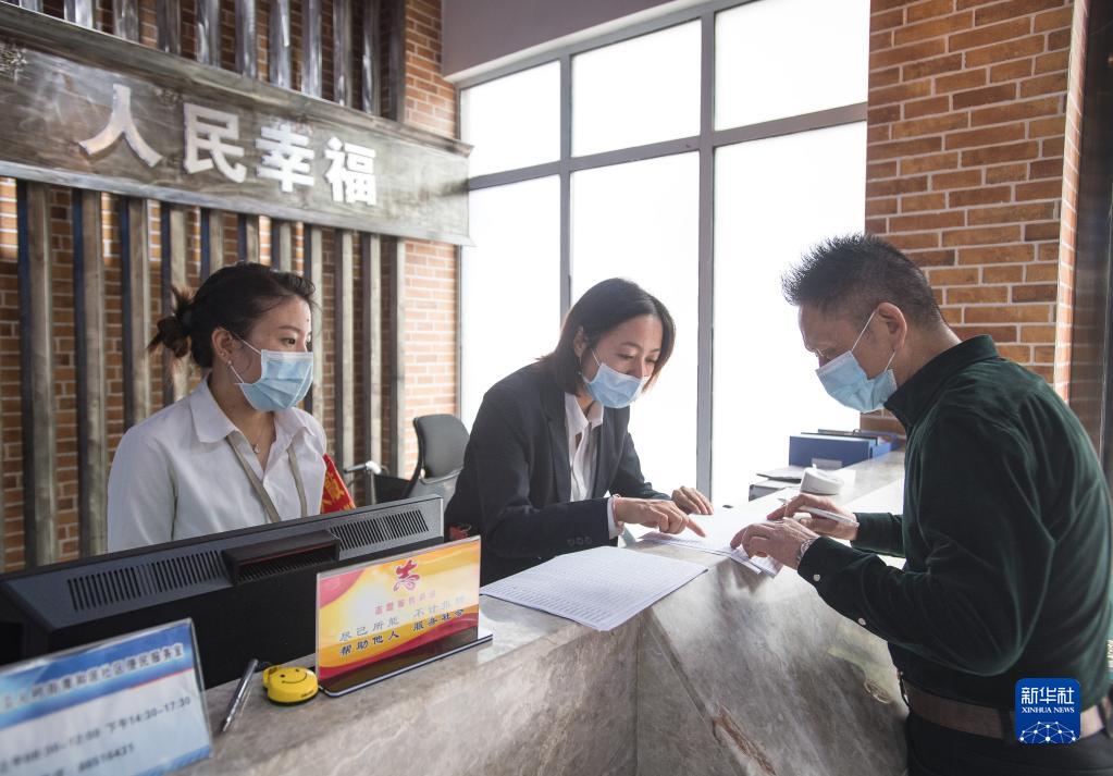 2020年9月18日,湖北省武漢市青和居社區服務中心工作人員協助社區居民填寫(xie) 材料。新華社記者 肖藝九 攝