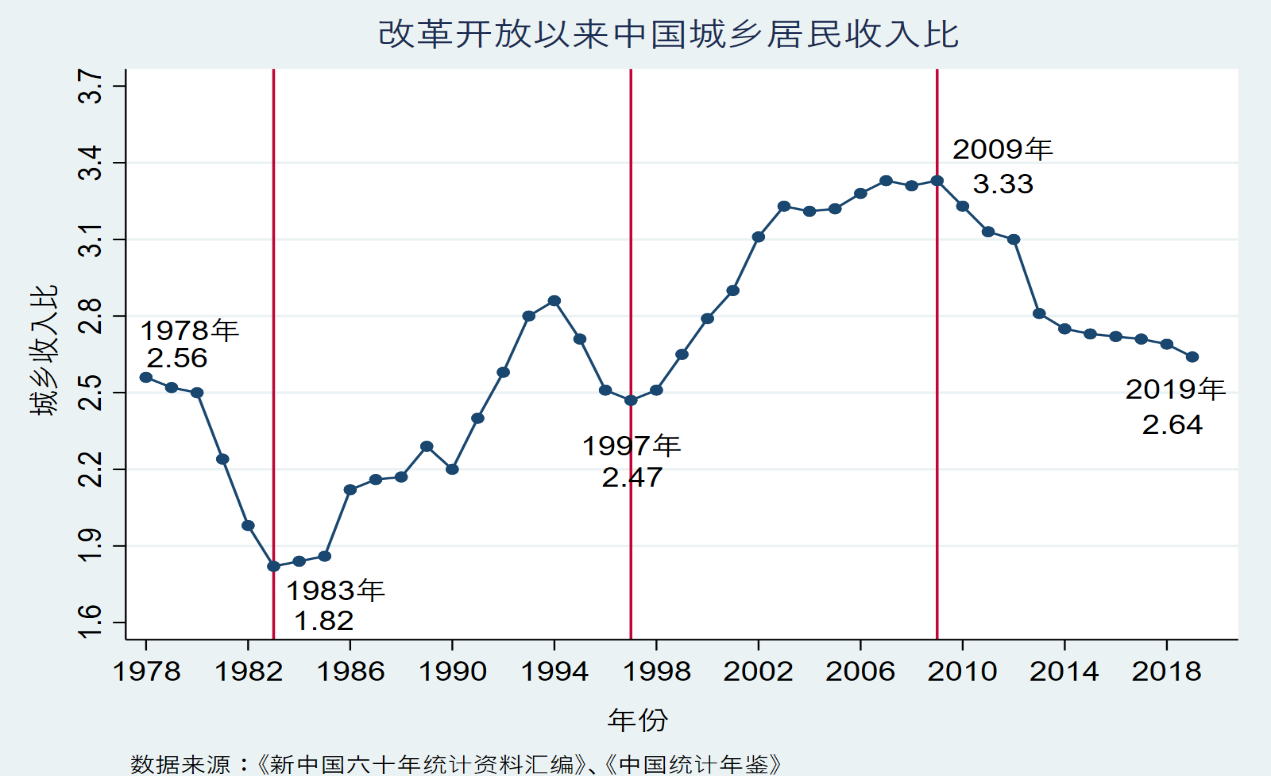圖5:改革開放以來中國城鄉(xiang) 居民收入比