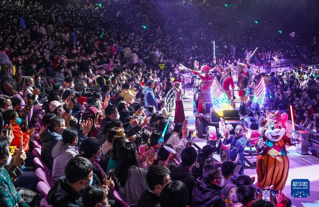 遊客在廣州長隆旅遊度假區遊園看馬戲表演(2022年12月31日攝)。新華社記者 劉大偉(wei) 攝