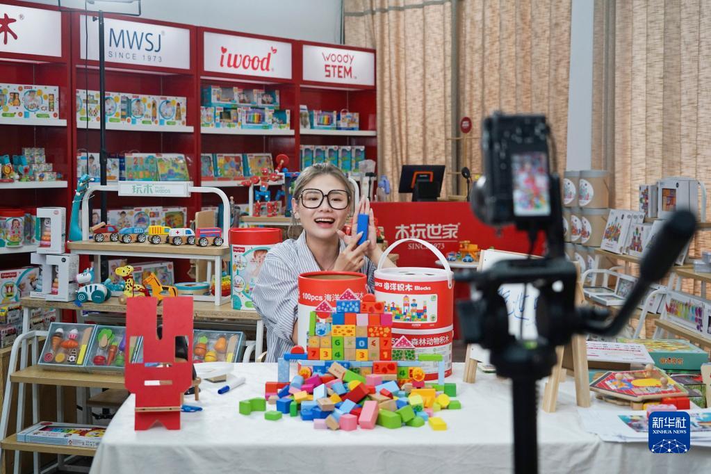 浙江雲(yun) 和一家玩具公司的主播在直播帶貨(2022年6月15日攝)。新華社記者 林光耀 攝