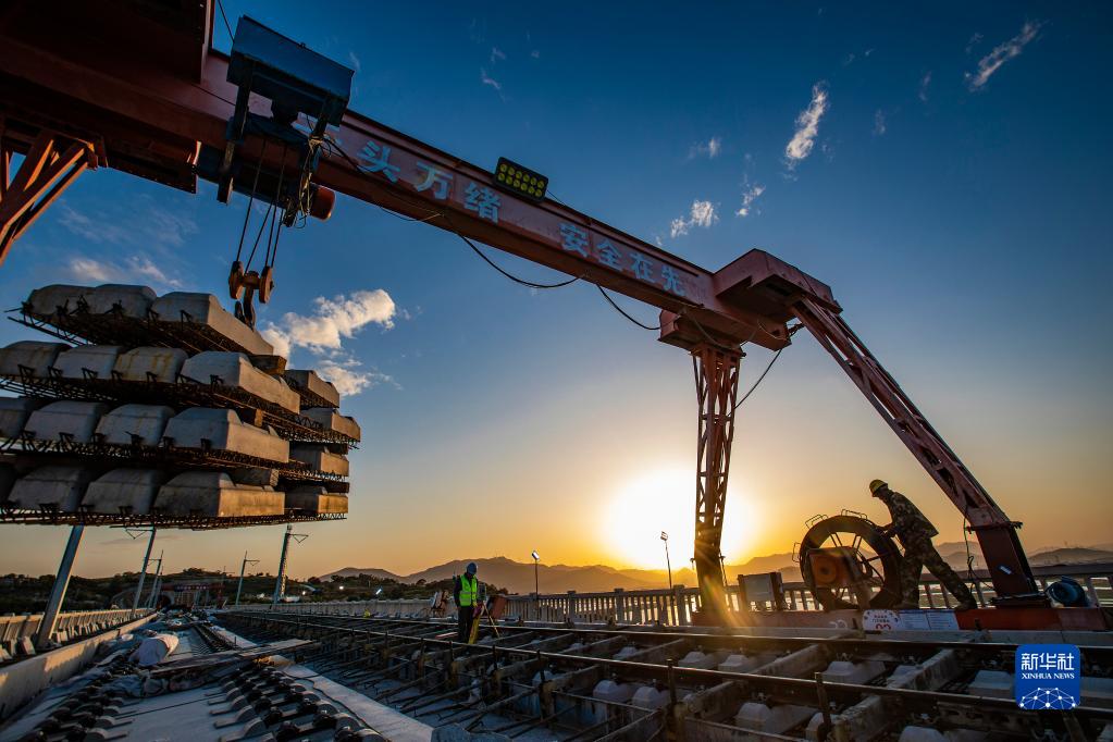 工人在新建福(州)廈(門)鐵路湄洲灣跨海大橋施工(2022年4月8日攝)。新華社記者 周義(yi) 攝