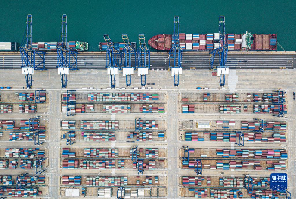 海南洋浦國際集裝箱碼頭一景(2022年11月5日攝,無人機照片)。新華社記者 蒲曉旭 攝