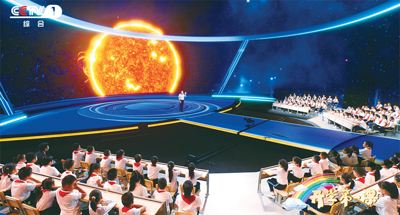 2023年《開學第一課》以“強國複興(xing) 有我”為(wei) 主題,從(cong) 傳(chuan) 統文化、文明探源、生態文明、鄉(xiang) 村振興(xing) 、國防教育、科技創新等多個(ge) 方麵,全景展示中國式現代化的萬(wan) 千氣象。圖為(wei) 中國科學院高能物理研究所研究員、“拉索”(LHAASO)首席科學家曹臻在向同學們(men) 介紹世界上海拔最高、規模最大的宇宙射線觀測裝置“拉索”的前世今生。 教育部供圖